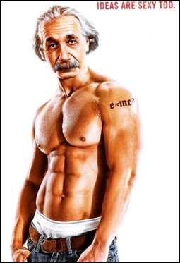 GM had used the image of Einstein in an ad for its 2010 Terrain vehicle that was only published in one issue of People Magazine in November of 2009, GM spokesperson Alan Adler said. The ad depicts the face of Einstein placed on a muscular body with the message, "Ideas are sexy, too," the report said.