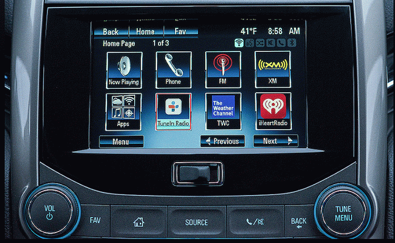 iHeart Radio allows motorists to tune in live radio broadcasts from the Clear Channel's network of 1,500 stations. Slacker Radio offers a choice of free music channels featuring content selected by disc jockeys, and TuneIn offers live radio channels featuring music, talk and sports.