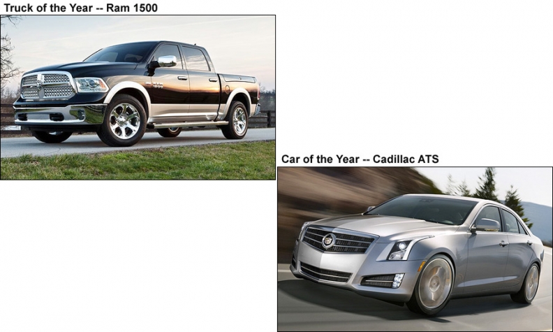 DETROIT -- The Cadillac ATS and Ram 1500 were named 2013 North American Car and Truck of the Year today by a panel of automotive journalists.